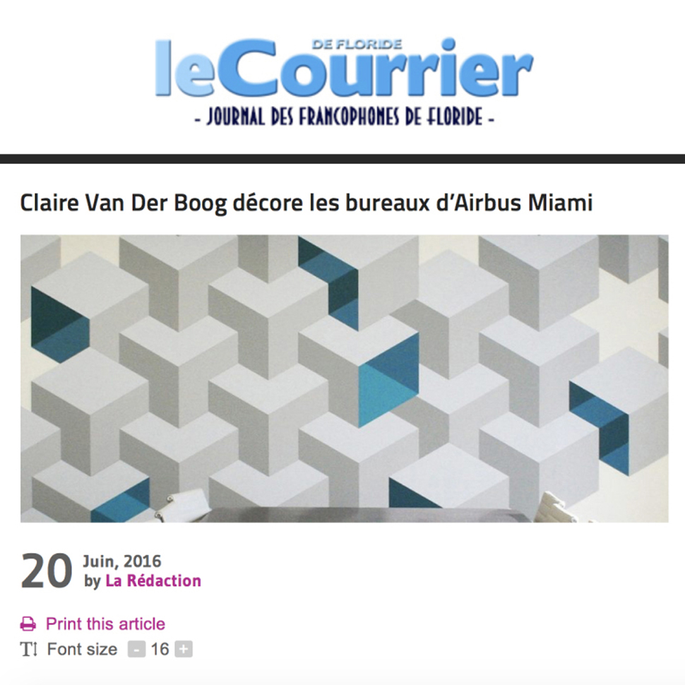 LE COURRIER DE FLORIDE Posted byclairevanderboogJune 20, 2016Posted inNewsTags:#Airbus, #art, #article, #cube, #illusion, #Miami Link Share this: Click to share on X (Opens in new window) X Click to share on Facebook (Opens in new window) Facebook Like Loading... Related